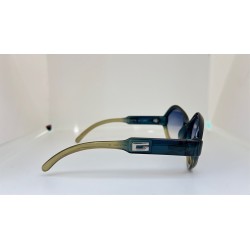 Montatura realizzata interamente in acetato. Con la sua particolare forma tondeggiante e con il suo doppio colore verde chiaro e verde scuro...
