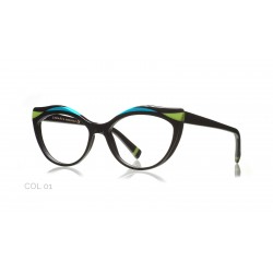 Montatura realizzata interamente in acetato. Con la sua particolare forma tondeggiante e con il suo doppio colore verde chiaro e verde scuro...